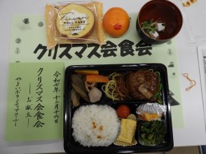 12月16日(火)恒例のクリスマス会食会が開催されました。食材が高騰している中でスタッフがやりくりして今年はハンバーグ!音楽の演奏やサンタさんからのプレゼントもあり、楽しい会になりました。