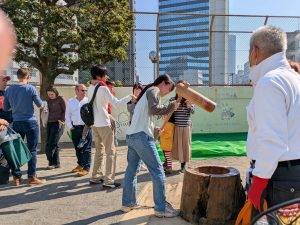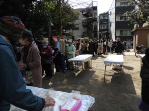 2月15日(日)弥生児童館の園庭で餅つきが行われました。外国人の方の飛び入り参加があったようです。